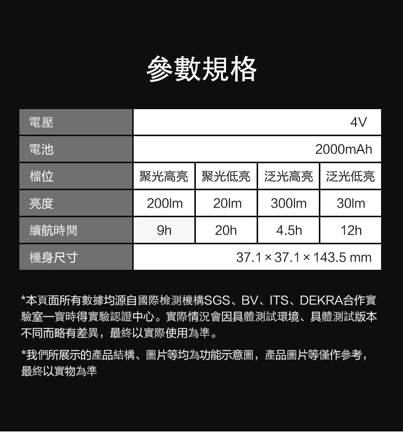 ✅ 聚光燈:遠距離照射(最高 200lm)